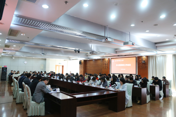 11月9日下午,学校召开办公室系统工作会议。校纪委书记杭育新出席并讲话,党政办主任刘宇雷主持会议,各学院、直属单位党政办公室主任,机关职能部门综合办主任或行政干事及学校党政办全体人员参加了会议。