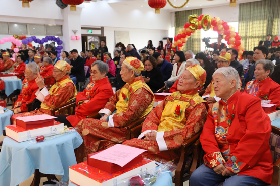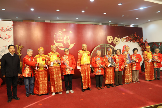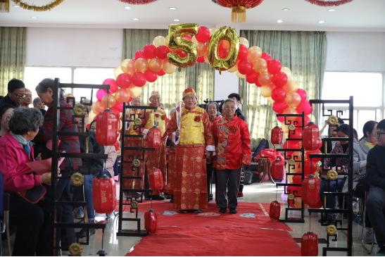 夕阳红艺术团舞蹈队、合唱团以及艺术学院学生为金婚夫妇们表演了精彩的节目,把金婚庆典气氛推向高潮,庆典在喜庆热烈、温馨祥和的气氛中圆满落下帷幕。