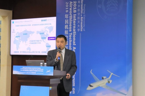 此次国际学术论坛特邀嘉宾中国民用航空上海航空器适航审定中心主任顾新作主题为“运输类飞机适航审定的挑战”的精彩报告。他就复合材料、高集成复杂系统安全性、综合航电系统与机载网络安全性、增材制造等领域适航面临的挑战进行了深入浅出的阐述,并就人为因素领域面临的适航问题进行了探讨,引起了与会代表的共鸣和广泛兴趣。