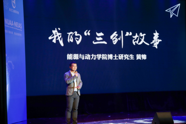 伴随着《南航“三创”岁月》的视频展播,开幕式正式拉开帷幕。视频回顾了我校大学生创新创业教育工作的发展历程,展示了我校多年来依托各专业(学科)特色,产出的精彩“三创”成果和开展大学生创新创业教育工作的经验。能源与动力学院博士研究生黄帅分享了他参与“三创”活动的成长历程与收获。科创是一项需要长期坚持的自主学习,黄帅以自身的科创历程为例,回顾了自2010年在南航求学以来的创新创业的个人经历,鼓励学弟学妹们在扎实学习的基础上,利用好学校资源,积极开展创新实践。