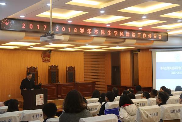 近日,学校召开2017-2018学年本科生学风建设特色工作答辩评审会。校党委副书记陶勇,学生处、研工部、教务处、教师发展与教学评估中心负责人以及各学院本科教学副院长、副书记、全体辅导员参加。