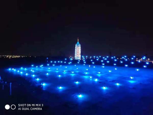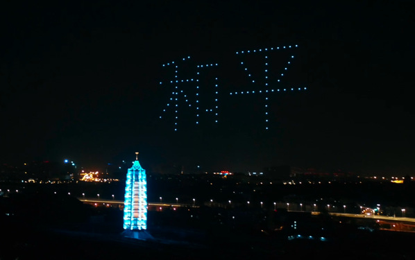 本次活动中,特别由我校2015届校友王钰霖带来的无人机编队,在蓝色的荧光中缓缓升空——“和平之翼”天幕光影展演同步开始,“和平鸽”“南京”“紫金草”“和平”“橄榄枝”……无人机编队在空中不断排列组合,交替呈现出的立体图案,在空中熠熠夺目。烛光摇曳、飞影变幻、音符飘扬,别开生面的和平汇演,温暖与激昂,让南京这个冬夜更加不平凡。