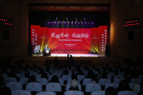 校党委书记郑永安在讲话中指出,“爱国奋斗·南航担当”校友总师思政公开课是我校学习贯彻习近平新时代中国特色社会主义思想,落实全国教育大会精神的重要举措。此次思政公开课将国家战略性产业领军人物、重大型号的校友总师请回母校,为师生讲述“国之重器”的科学原理、核心技术、未来发展,以及为国铸重器的艰苦历程,将进一步激励南航师生把个人理想自觉融入国家的发展伟业。