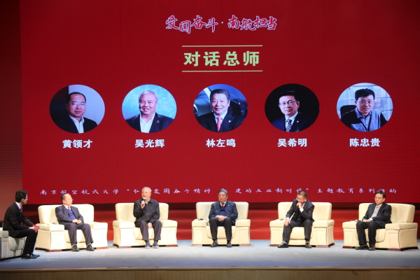 12月16日,爱国奋斗·南航担当——校友总师思政公开课在明故宫校区大学生活动中心举行。中国航空学会理事长林左鸣,C919大型客机总师吴光辉,直-10、直-19总师吴希明,AG600水陆两栖飞机总师黄领才,北斗三号卫星总师陈忠贵等五位校友齐聚母校,为师生带来校友总师思政公开课。