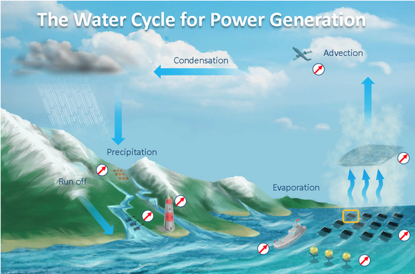 水对生命不可或缺。人体重量约70%的是水,细胞的水含量可达80%。水覆盖了约71%的地球表面,吸收了太阳辐射到达地表能量的近70%。地球上水动态吸纳释放能量的年平均功率高达60万亿千瓦,比全球人类的年平均能量消耗功率(2016年约180亿千瓦)高三个数量级,其中水蒸发的年平均功率达40 万亿千瓦,具有巨大的开发利用空间。水能不同于太阳能和风能,在水循环过程中可演化为蒸发能、雨滴能、流动能、落水能、波动能等丰富形式。