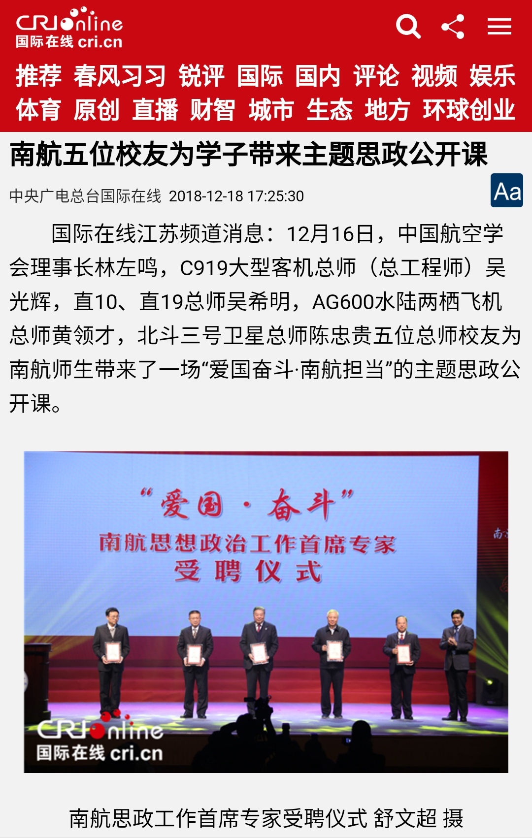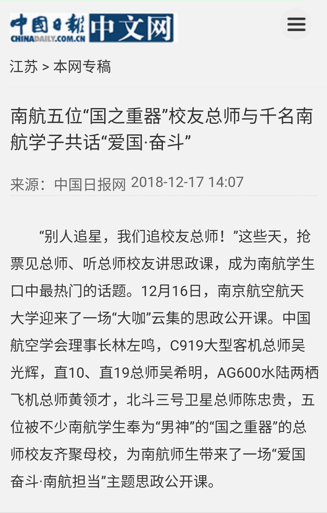 南京日报:南航5位“巨咖”校友成“思政老师”
