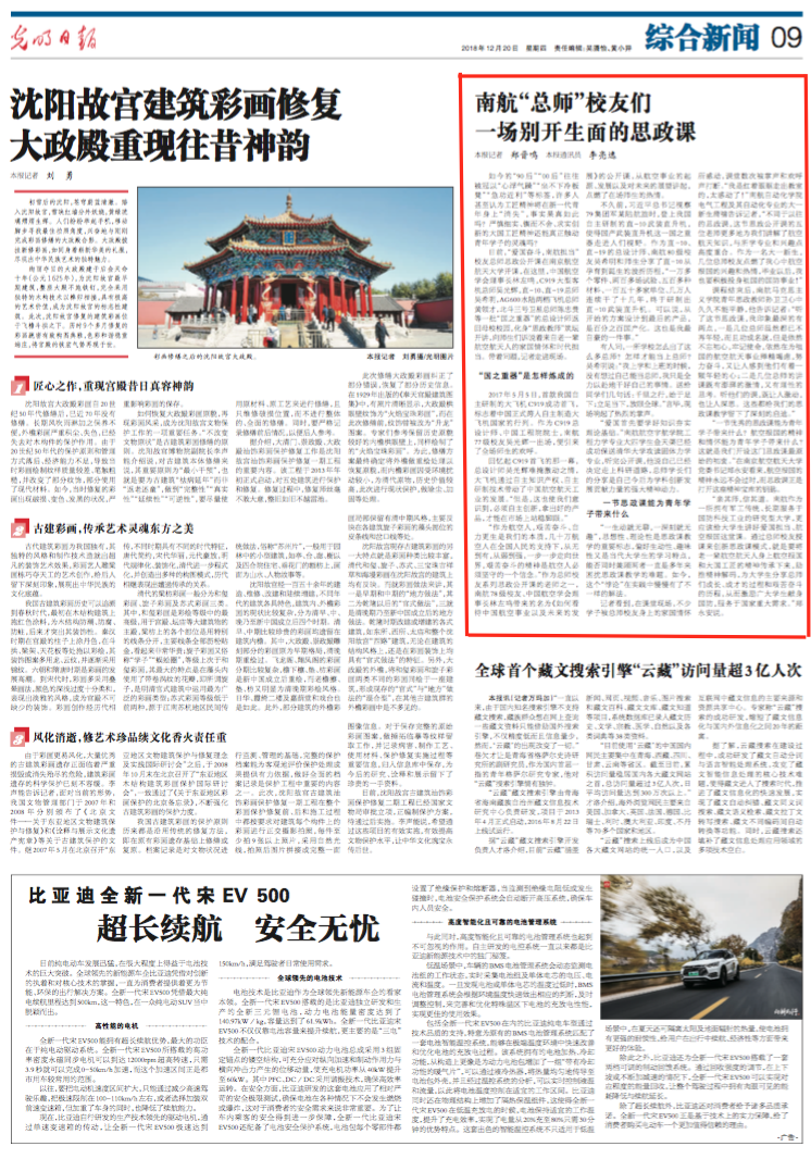 光明日报:南航“总师”校友们一场别开生面的思政课