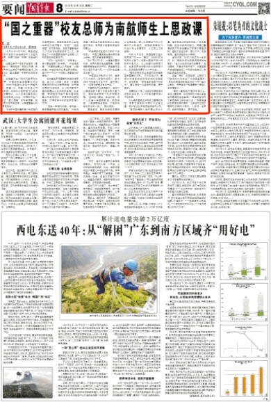 中国青年报:“国之重器”校友总师为南航师生上思政课