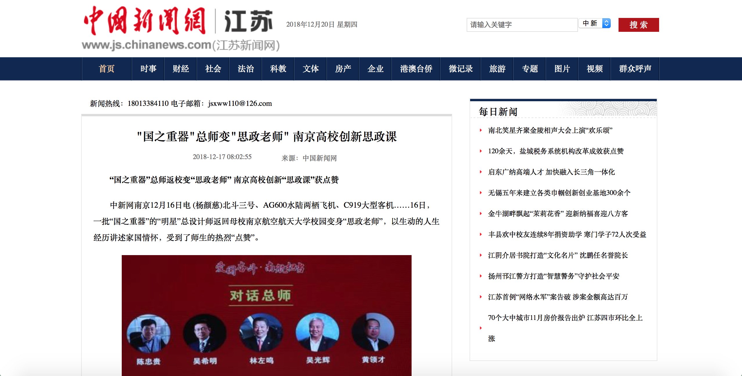 中国新闻网:“国之重器”总师变“思政老师” 南京高校创新思政课