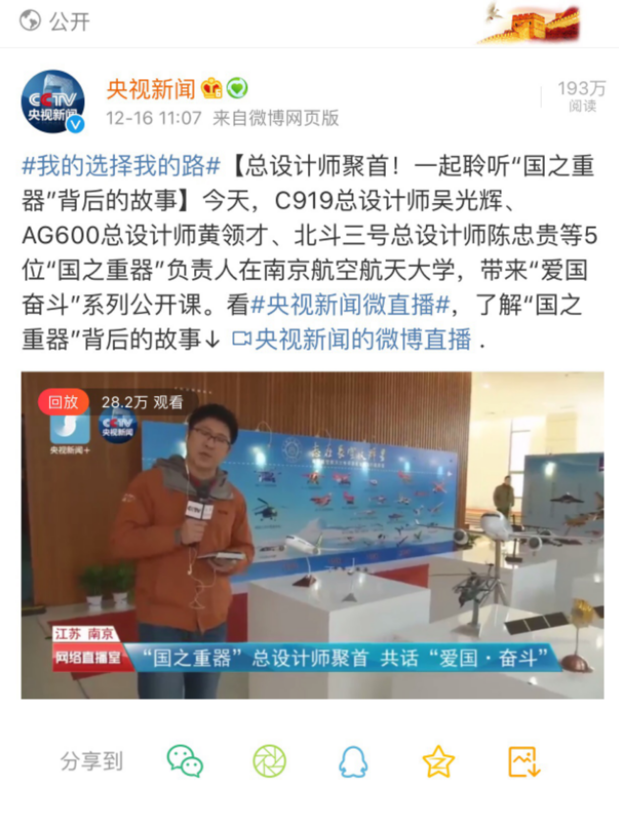 新华社客户端与央视新媒体两大平台对“总师对话”环节进行了全网直播。