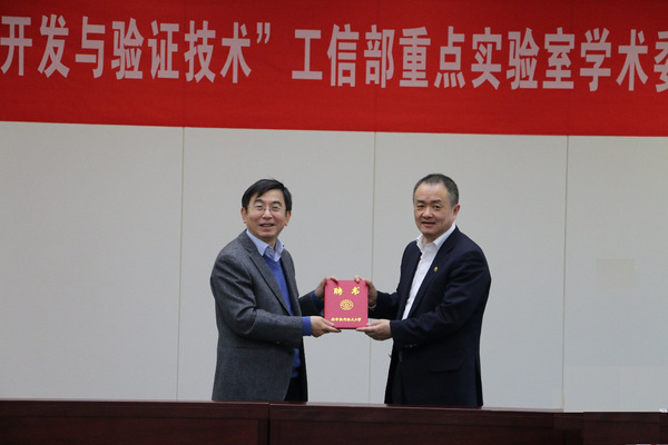 第一阶段会议开幕式由计算机科学与技术学院院长陈兵主持。施大宁在欢迎辞中对各位专家支持重点实验室的建设表示感谢。接着,沈建新宣读了工信部重点实验室的相关文件和要求,从制度上对重点实验室的发展做出了规范。施大宁为学术委员会委员颁发聘书。