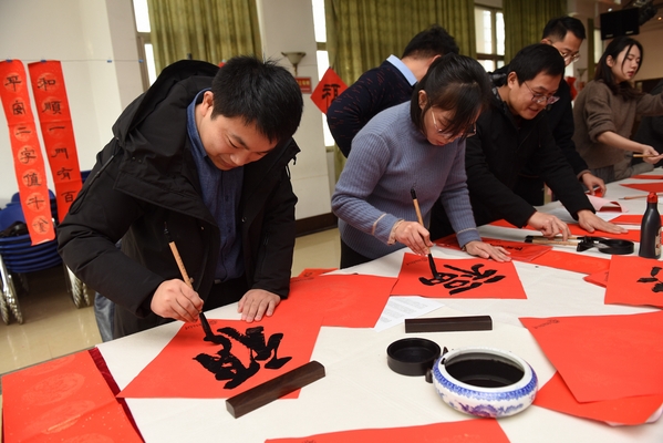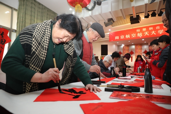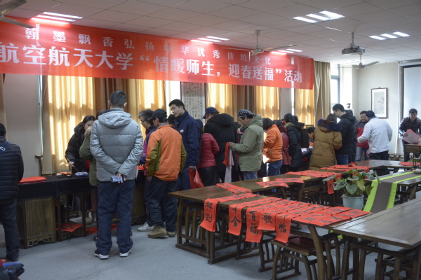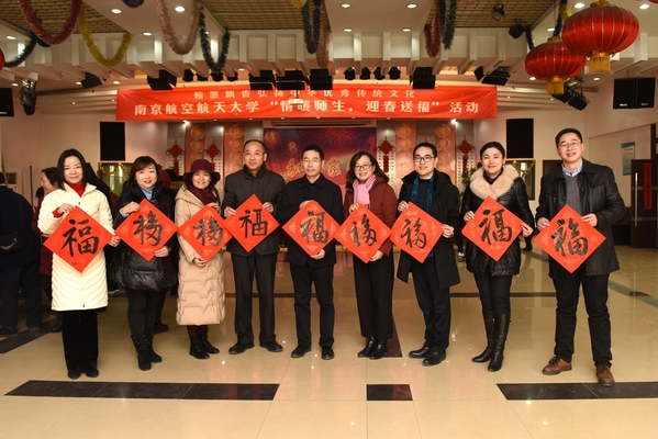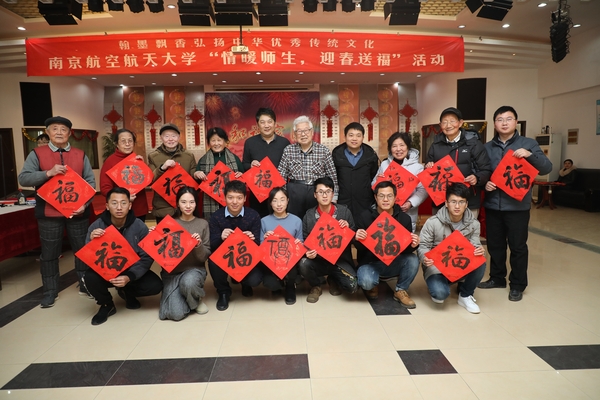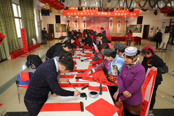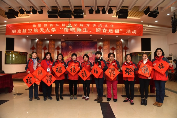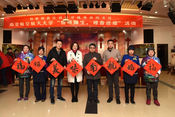 1月16日、17日,由宣传部、校工会、艺术学院、离退休处联合主办的“翰墨飘香弘扬中华优秀传统文化”——南京航空航天大学“情暖师生,迎春送福”活动分别在我校西苑教工活动中心、将军路校区砚湖书院举行。校纪委书记杭育新,党委常委、组织部部长李遥,党委常委、宣传部部长王晖出席活动,相关部处领导、师生员工、离退休老同志等600余人参加活动。