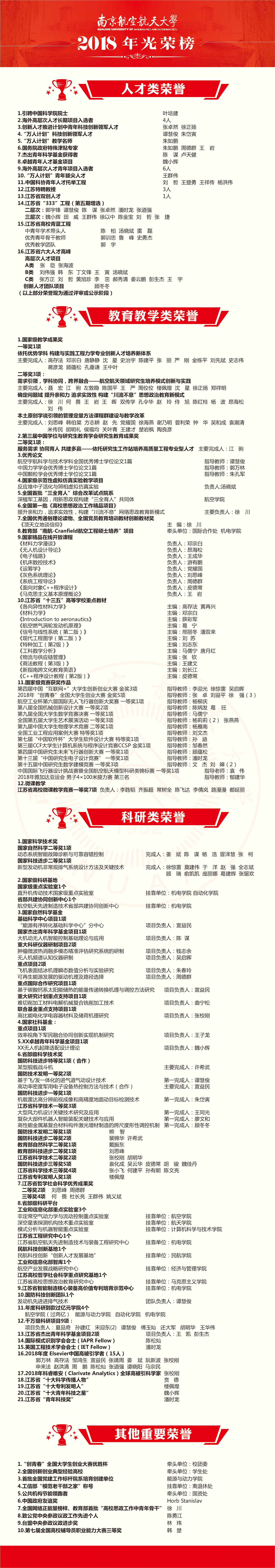 南京航空航天大学2018年光荣榜