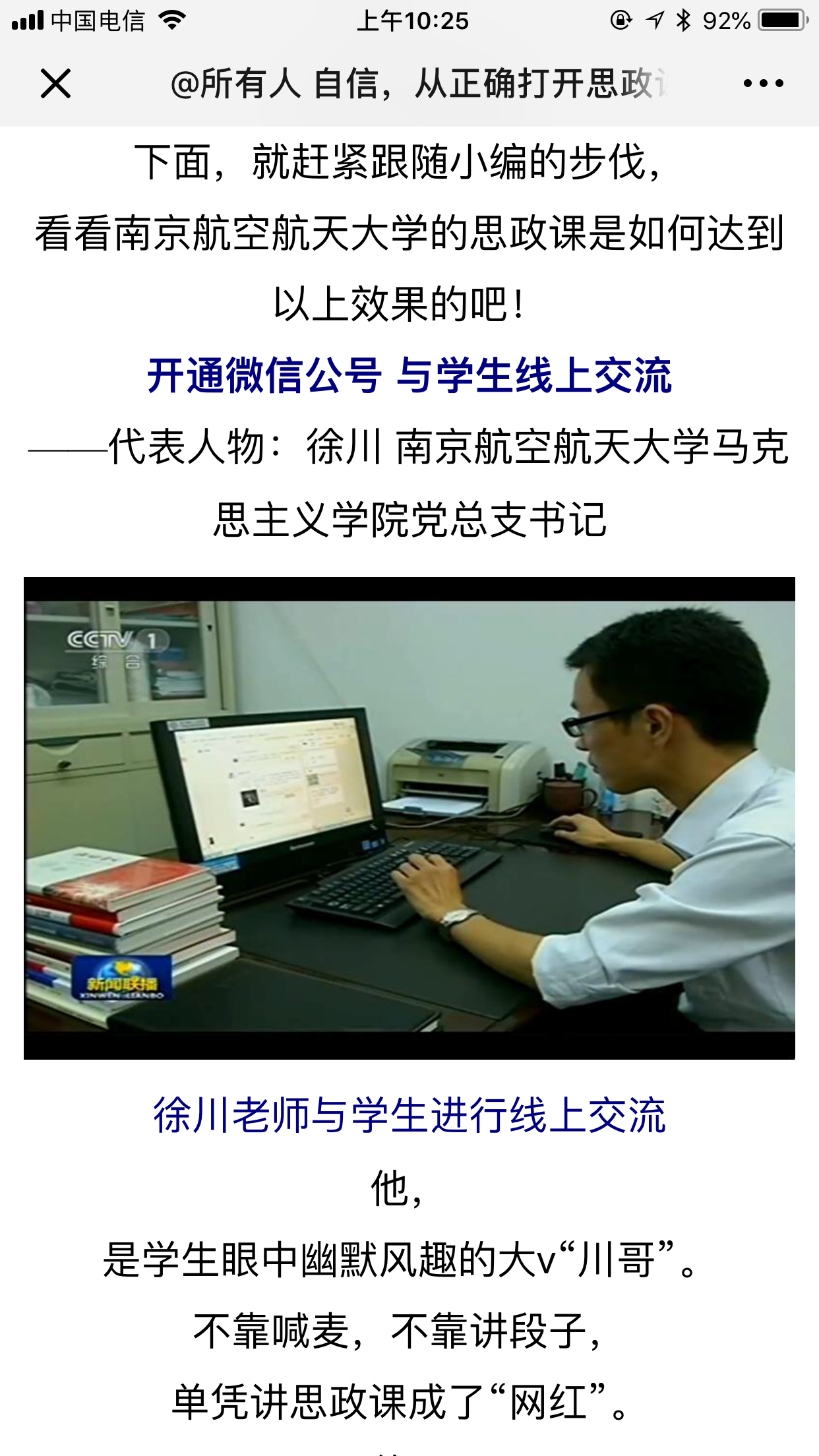 该系列报道重点关注了我校的思想政治工作典型经验做法,并对徐川、何畏、一分钟视频团队进行了采访和报道,相关内容还得到新华网英文频道报道。