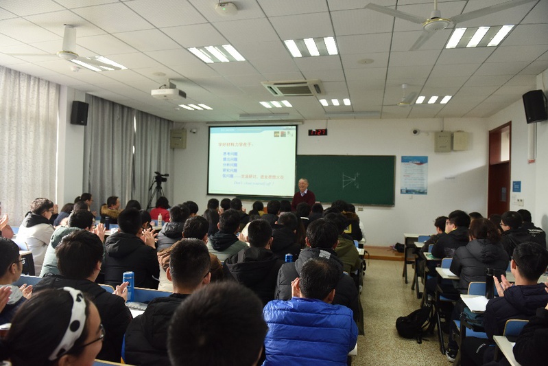 2月26日上午10时,将军路校区2106教室里座无虚席,近百位学生和教师正在期待首届国家教学名师、我校“钱伟长讲座教授”、82岁高龄的范钦珊教授亲自讲授《材料力学(A)》的第一课。范钦珊在与前排的学生与老师问好后,精神矍铄地走上讲台,开始了他今天的课程。值得一提的是,在这次导论课的课堂上,除了45位学生以外,还吸引了全校不同学院的65位老师前来观摩学习。