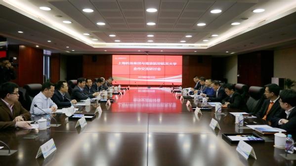 上海机场集团党委书记、董事长秦云,民航华东管理局党委书记姜春水,民航华东空管局局长余波、副局长赵诚琪,东方航空集团董事长刘绍勇,党组副书记唐兵对郑永安一行来访表示热烈欢迎。在座谈会上,双方共同观看了学校及民航单位的宣传片。我校发展规划处处长金科汇报了学校民航特色发展的建设方案。民航单位主要负责同志对学校长期以来在人才输送等方面对民航单位发展的支持表示感谢,介绍了本单位发展的历史和现状,着重介绍了当前民航事业快速发展的机遇,以及在航空安全、大数据分析、空域评估等方面遇到的问题及困难。希望学校继续在人才的定向培养、员工继续教育、党建和思想政治工作等方面给予更多的支持和帮助。