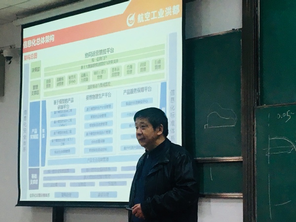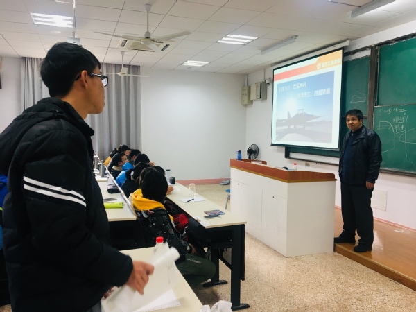 宋利康结合洪都在航空产品研制过程中的数字化实践,从支撑产品创新研制的IT架构、产品研制数字化环境、生产管理信息化平台、综合运营管控体系、信息化基础支撑条件等五个方面,系统讲述了航空主机厂的飞行设计与制造,尤其突出介绍了在产业转型升级的背景下,飞机设计制造技术的智能化、数字化、柔性化发展,生动鲜活地呈现出飞机由设计到制造的全过程、全环节,有力增进了学生对飞行器制造专业的科学定位与高度认同。宋利康的讲述娓娓道来,重点突出,同学们受益匪浅,现场不时响起热烈的掌声。