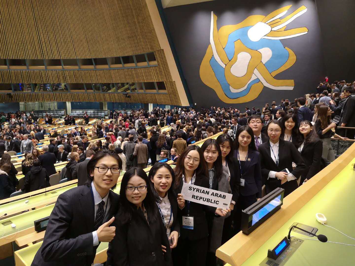 我校代表团由来自自动化学院、机电学院、民航/飞行学院、经济与管理学院、外国语学院的13名本科、研究生组成,由范婷婷、杨一老师带队参会,所代表国家为叙利亚,代表分布在联合国大会第一委员会、第二委员会、第三委员会和联合国环境大会、《联合国气候变化框架公约》缔约方会议、维和行动特别委员会。会议期间,同学们立足代表国既有立场,在前期大量、充分的议题调研基础上,围绕叙利亚国内政治不稳定、恐怖主义滋生导致人权危机严重;基础设施薄弱、能源开发不充分导致国民经济困难;生态环境脆弱、应急能力差导致自然灾害风险大等多个突出问题进行了讨论。既集中力量向国际社会反应代表国的问题和诉求,也特别注重立足国情对其他重要国际问题提出建设性意见,有力推动了会议进程,展现了“外交官”的职业素养和专业能力,获得了会议主办方和其他参会代表的赞扬与肯定。