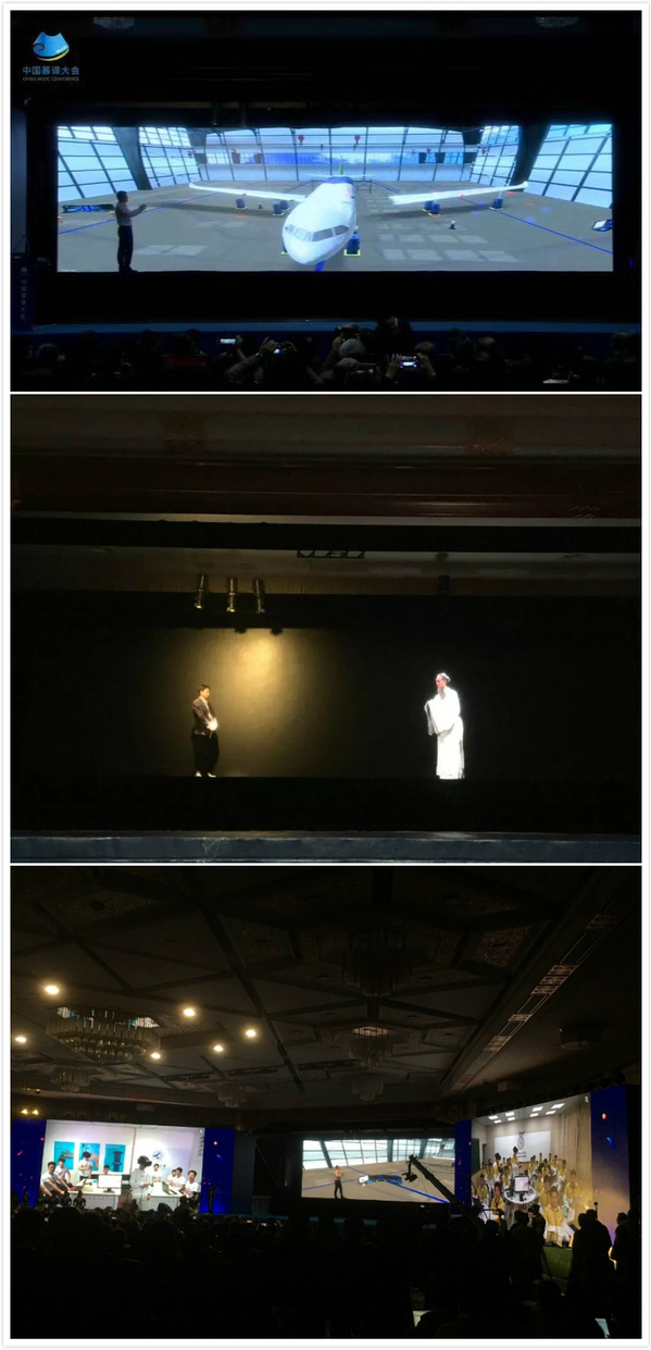在5G+VR技术支持下,我校机电学院田威和李泷杲两位老师与千里之外的贵州理工大学和西北工业大学以及现场的我校师生协同,在大会现场完成了一场往返4000公里的飞机翼身对接虚拟仿真异地协同实验,同时通过全息影像技术,与孔子进行了一场穿越时空的对话。教育部副部长钟登华,以及与会的其他领导和国外嘉宾,现场头戴VR眼镜,实时体验了飞机装配过程。