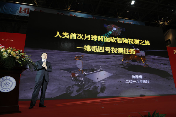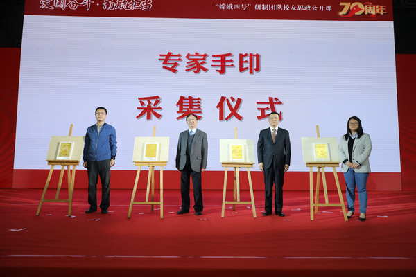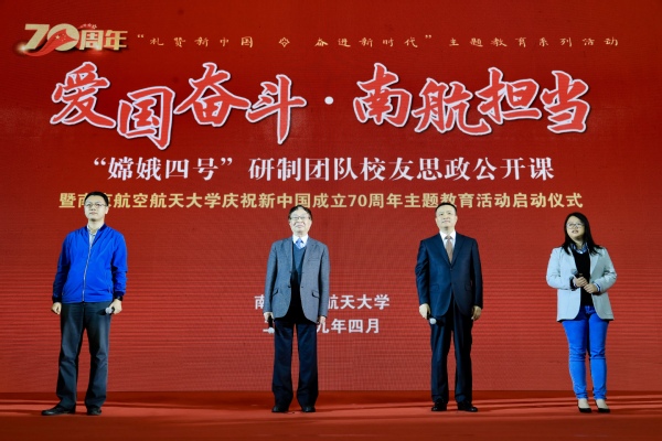 4月11日晚,“爱国奋斗·南航担当”嫦娥四号研制团队校友思政公开课暨“礼赞新中国 奋进新时代”—庆祝新中国成立70周年主题教育活动启动仪式在我校将军路校区体育馆举行。中国科学院院士、嫦娥系列探测器及火星探测器总指挥总设计师顾问、我校航天学院院长叶培建,1988级校友、嫦娥四号探测器、火星探测器总设计师孙泽洲以及2002级校友何秋鹏、2004级校友高珊走进校友思政公开课堂,为现场1700余名师生带来一堂精彩思政课。党委副书记、校长聂宏,党委副书记陶勇,党委常委、组织部部长李遥,党委常委、宣传部部长王晖出席活动,公开课由陶勇主持。