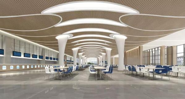校区食堂:校区(一期)食堂总面积达10000平方米,食堂共三层,一、二两层为学生餐厅,三层为教工餐厅和接待餐厅。一、二层设座位数1200余个,单餐可满足4800人次的学生用餐。三层教工餐厅设座位数240个,单餐可满足700人次的教师用餐。三层的接待餐厅设有大小包厢若干,将服务于师生交流聚餐、组织和开展各类文化活动,极力满足师生的多元化餐饮需求。