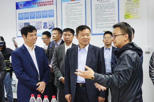 调研中,李健一行先后参观了我校无人机研究院和民航学院的实验室,郑永安汇报了新时代学校坚持立足民航、服务民航、引领民航发展的思路和想法。在无人机研究院,李健一行先后详细了解我校在无人机研制方面的历史、基础和优势,目前在研的型号任务进展情况。在民航学院,李健一行先后参观了航空大数据研究室、智慧低空通航混合运行综合保障研究与验证平台,民航应急科学与技术实验室。对于我校在低空空域安全态势评估、“空中高德”系统、民航应急科学技术装备研发和应急训练等成果给予了高度的评价。