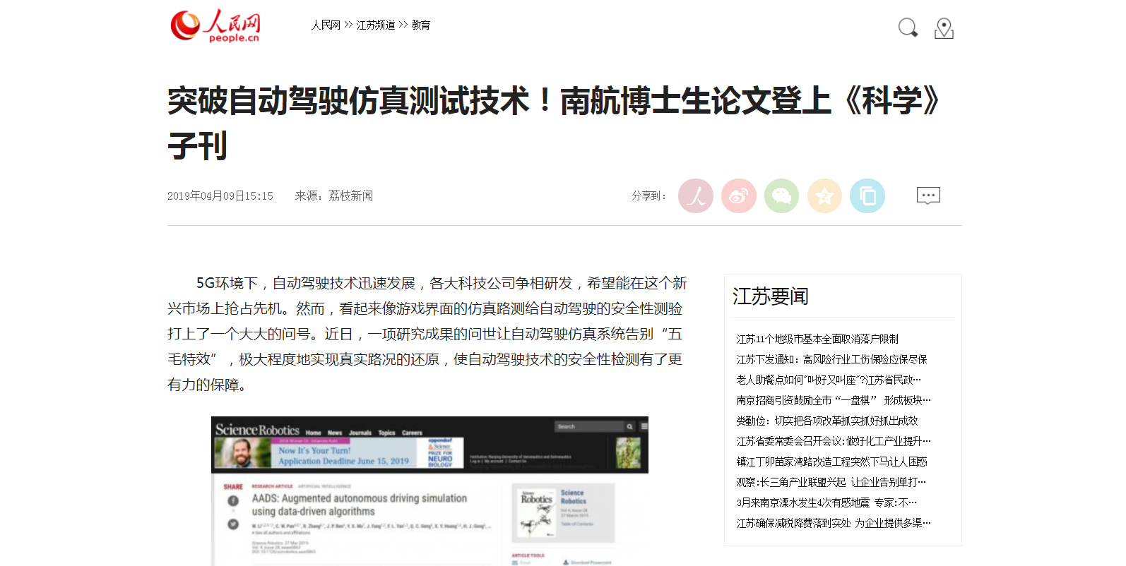 人民网:突破自动驾驶仿真测试技术!南航博士生论文登上《科学》子刊