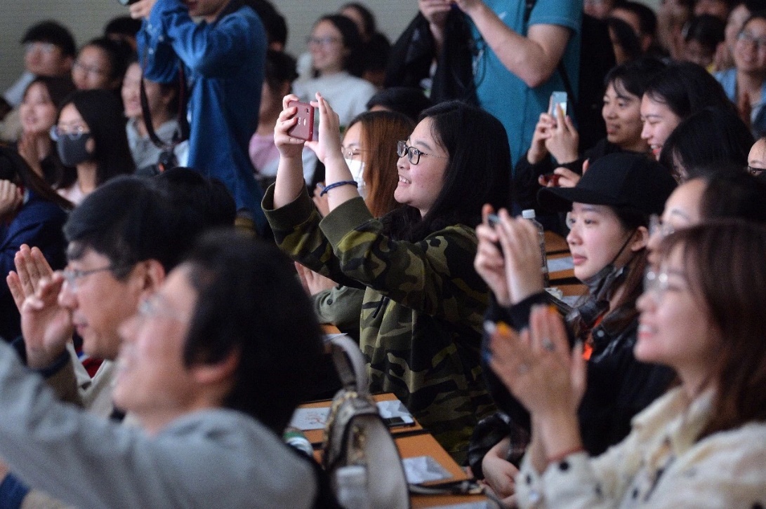 为了使同学们更加了解戏曲,接近戏曲,演出过程中主持人还邀请了同学上台互动,现场教授戏曲的手、眼、身、法、步,让大家共同领略和欣赏戏曲的艺术魅力,在场的观众也深切地体会到了“台上十分钟,台下十年功”的真正含义。