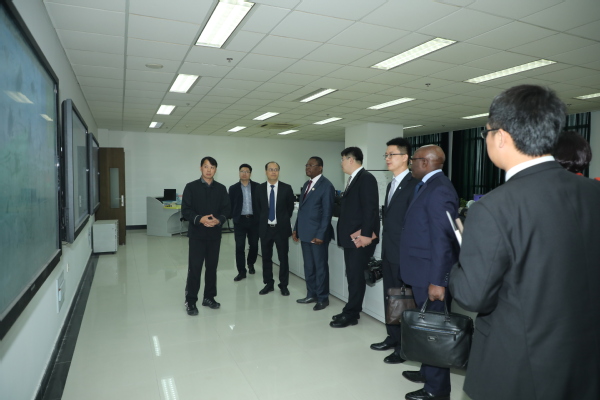 会谈结束后,Fidele Dimou一行参观了国家飞行流量管理技术重点实验室。Fidele Dimou部一行还与在我校就读的刚果(布)留学生亲切交谈,了解他们学习、生活的具体情况,并提出殷切期望。