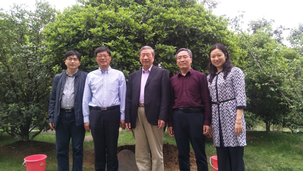 报告会前,刘大响在刘双丽、崔海涛、张校刚以及能源与动力学院部分师生的陪同下,在我校“院士林”为多年前所植桂花培土浇水,并和大家合影留念。