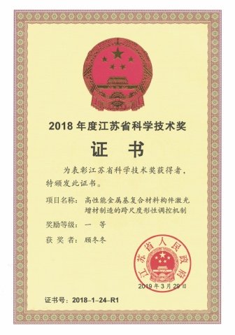 顾冬冬教授团队提出了激光增材制造金属基复合材料构件微观组织与界面调控方法及强韧化机制;构筑了介观尺度下复合粉末激光熔凝及致密化的局部能场调控原理;形成了基于激光线/体能量密度的复杂构件增材制造工艺及性能立体控制关键技术与原理;发展了激光增材制造高性能金属基复合材料构件的材料-结构-性能跨尺度一体化调控科学理论。该获奖项目由德国Springer出版英文专著1部,发表SCI论文64篇(ESI高被引4篇)。论著被SCI他引1781次,单篇最高SCI他引115次。他引包括Prog Mater Sci、Nano Today、Nature Comm等著名期刊论文;他引作者包括国内外30余位院士、ASME、CIRP会士;本成果一系列理论和机制被多个国际知名实验室证实或借鉴。授权国家发明专利6项。该获奖项目成果在中航工业成飞、航天八院等单位型号产品上获得应用验证,推动了高性能金属构件激光增材制造形性调控理论的发展及应用。