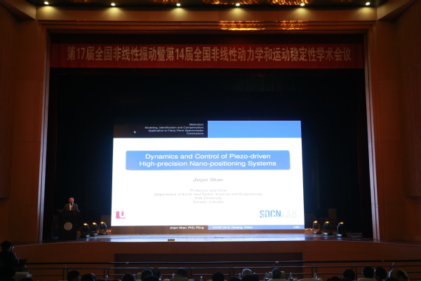 本次会议重点围绕创新国家建设中涌现出的非线性振动、动力学和运动稳定性等基础和应用基础及工程应用研究进行了深入的交流和探讨。石家庄铁道大学杨绍普教授、加拿大约克大学陕晋军教授、清华大学张一慧副教授、广州大学文桂林教授、天津大学柯燎亮教授、北京航空航天大学王青云教授、西南交通大学李映辉教授、上海交通大学张文明教授、上海大学李常品教授、我校刘先斌教授分别作了“高速动车组走行部关键部件服役性能演化研究”、“压电驱动高精度定位系统非线性动力学建模及控制”、“力学引导的微尺度三维结构组装及相关动力学问题”、“平面镜成像光学本质:莫比乌斯带阵列偏振奇异性”、“功能梯度梁振动的几个基本问题”、“帕金森疾病的建模分析与调控策略”、“石墨烯增强多孔复合材料自旋壳动力学研究”、“智能材料结构与微纳系统动力学研究进展”、“分数阶动力学及其应用”、“基于大偏差理论的非线性随机动力学研究新进展”的大会报告。