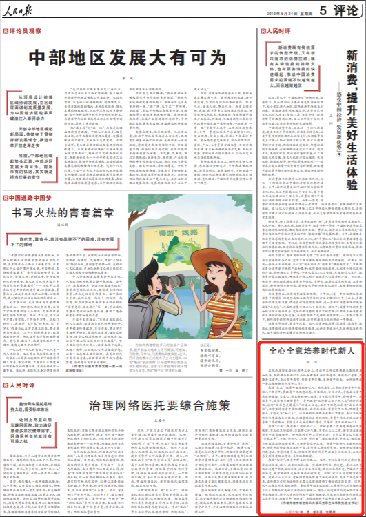 近日,《人民日报》刊发我校马克思主义学院党总支书记徐川的文章《全心全意培养时代新人》,现将全文刊发如下: