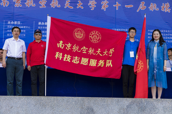 开幕式上,许希武、大赛组委会副主任吕卫东分别致辞。随后举行了“礼赞共和国、追梦新时代”科技志愿服务行动的启动仪式,冯少东和刘双丽共同为“南京航空航天大学科技志愿服务队”授旗。同时,江苏省“航空特色科普联合体”还在开幕式上向南京聋人高级中学捐赠了100套航空科普器材。孙文德宣布活动开幕。