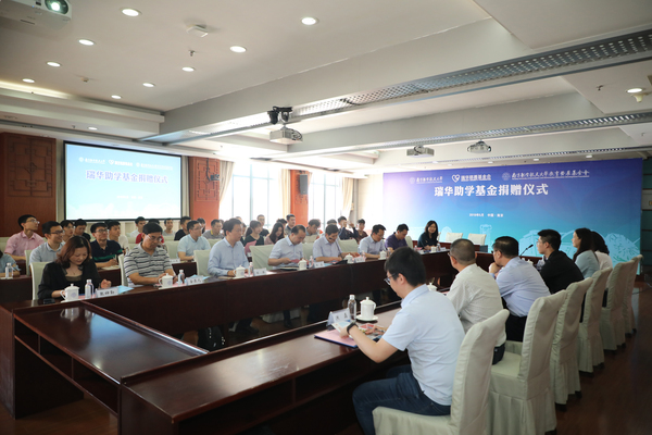 捐赠仪式上,张颂杰,校发展联络部部长、基金会秘书长闾浩及学生处处长侍旭共同签署了捐赠协议。张奥星、郭顺根代表瑞华基金会,陶勇代表学校,双方互赠了捐赠支票和捐赠证书。
