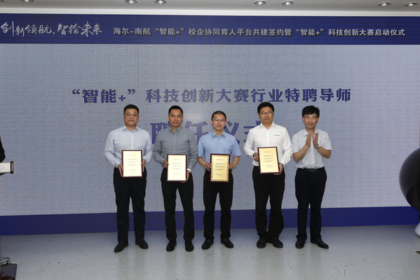 为进一步推进校企之间的资源互通、优势互补,学校聘请海尔集团段志国、任学良、刘子力、石恒担任“智能+”科技创新大赛行业特聘导师,孔垂谦为各“行业特聘导师”颁发聘书。同时,海尔工业智能研究院聘请我校航空学院教授魏小辉、机电学院教授郭宇、经管与管理学院教授朱建军、计算机科学与技术学院/人工智能学院教授赵蕴龙担任海尔“工业智能”行业特聘专家,张维杰为各“行业特聘专家”颁发聘书。