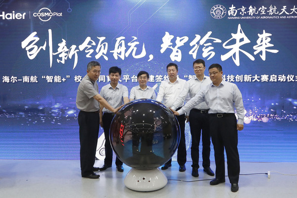 6月13日,海尔-南航“智能+”校企协同育人平台共建签约暨“智能+”科技创新大赛启动仪式在我校举行。海尔家电产业集团副总裁陈录城、智能制造总经理张维杰、制冷产业智能制造技术总监段志国、海尔数字科技(南京)有限公司总经理任学良、海尔工业智能研究院技术总监刘子力等一行11人,我校副校长施大宁,教务处、科研院、研究生院、学生处、团委等部门负责同志,航空学院、机电学院、经管学院、计算机科学与技术学院/人工智能学院领导和师生150余人参加活动。
