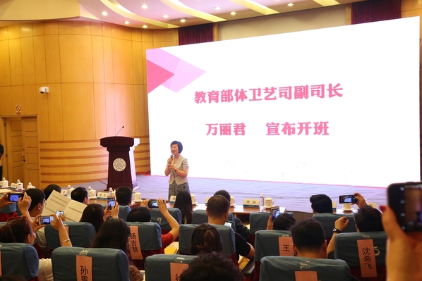 万丽君宣布本期研讨班开班,并为在场学员做了题为《以习近平新时代中国特色社会主义思想为指引,开创新时代学校美育教育新局面》的讲座。她从取得的成绩、存在的问题、形式的变化和政策的要求,为大家解读了新时代学校美育工作的内涵、基本原则和主要目标及内容,并强调,要以习近平新时代中国特色社会主义思想为指引,扎实推进新时代学校美育工作创新发展。