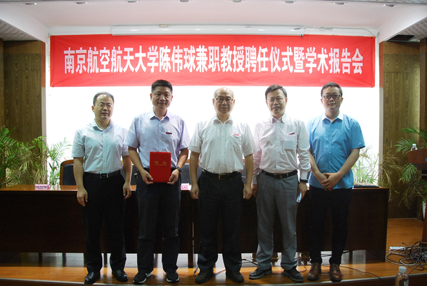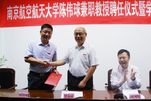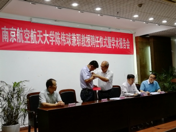 6月26日上午,陈伟球兼职教授聘任仪式暨学术报告会在我校举行,副校长黄志球,人事处处长孙建红、航空学院副院长魏小辉、钱征华出席会议。我校近百余名师生聆听了报告。