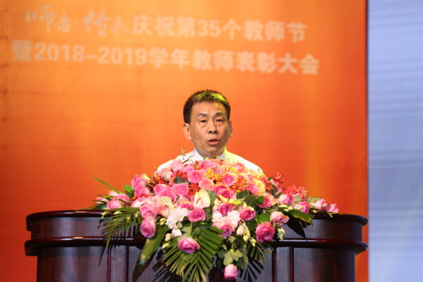 郑永安代表学校党委向辛勤耕耘在教学、科研、管理一线的教职工致以节日的问候,向受到表彰的集体和个人表示祝贺,向荣休教师表示崇高敬意,并向新入职教师表示诚挚欢迎!