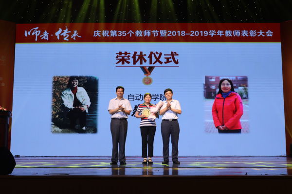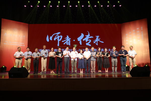 之后,大会表彰了2018-2019学年80余个在教学、科研等育人工作中,获得省部级以上的教师个人和团队,校党委书记郑永安、校长聂宏为他们颁发“突出贡献奖”。