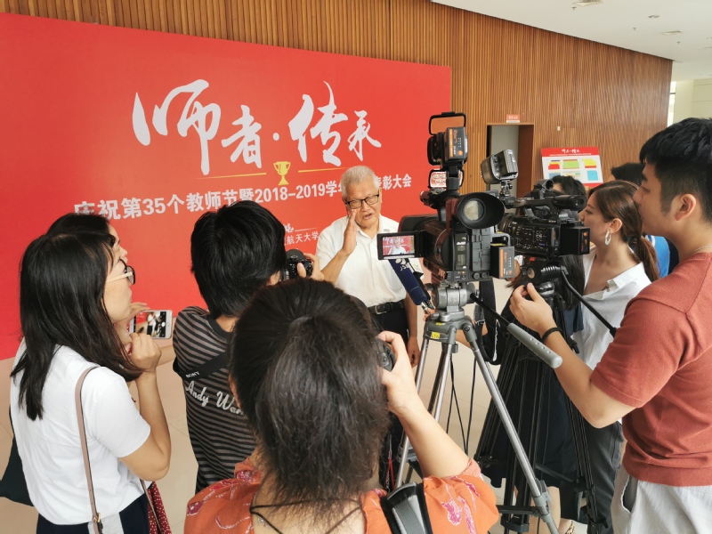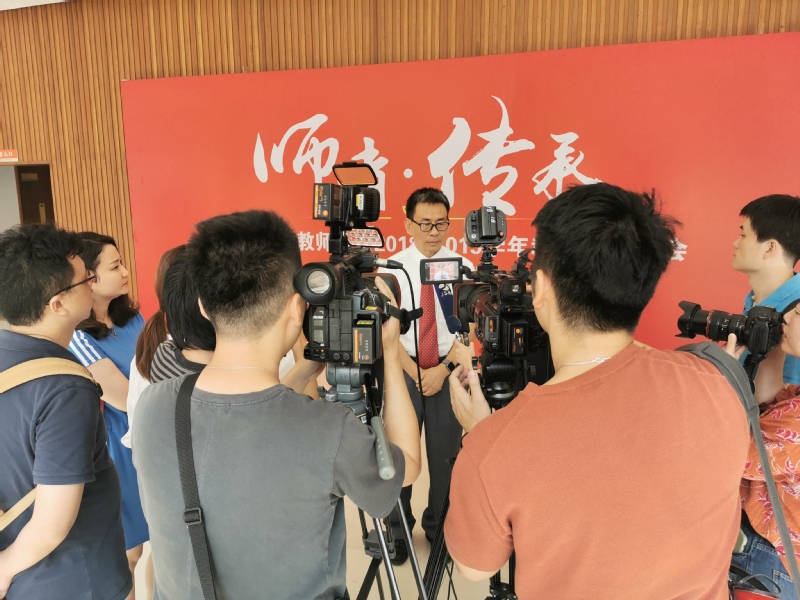 在《荣休教师访谈》视频中,退休教师代表回忆了几十年如一日教书育人的感悟,讲述了作为一名大学教师的幸福感,并向祖国和母校送上生日祝福。大会为55名2017-2018学年退休的教师举行荣休仪式,由副校长施大宁主持。郑永安书记、聂宏校长逐一为到场的退休教师颁发了荣休纪念奖牌并献花。