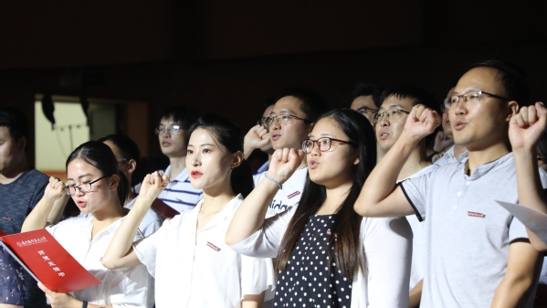 李建峰带领全体新入职教师签署《师德承诺书》,之后在李建峰老师领誓下,全体新教师进行了庄严的入职宣誓,铿锵的誓言表达着他们献身教育事业、续写南航明天辉煌的决心。