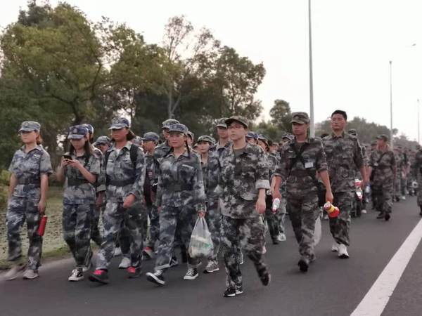 拉练队伍浩浩荡荡,西出南航校门,沿着燕山南路前进,目标直指天目湖。行进过程中,由教官们组织的尖刀班开路,军训旅首长紧随,两个学院的副书记走在各自学院最前方,辅导员和各连教官行进在队伍中间。队伍后方,安排了救护车以及收容车,保障学生的拉练安全。