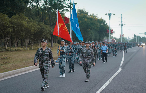 9月14日凌晨,天目湖校区2019级新生野外行军拉练在夜幕中拉开帷幕。此次拉练全程10公里,共计10个连队的1600余名新生历经两个小时跋涉,于清晨六点抵达天目湖畔拉练集结点,顺利完成拉练任务。