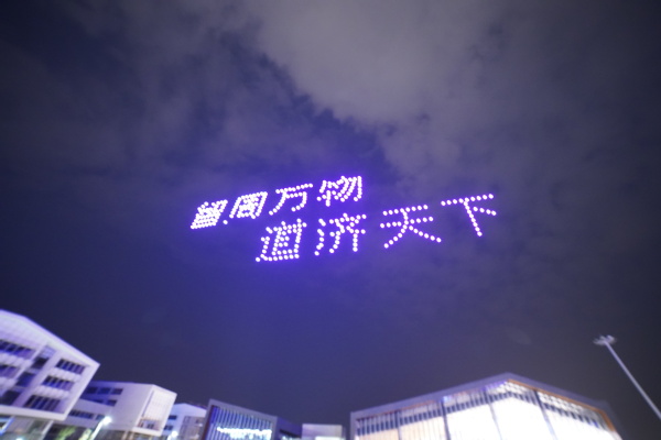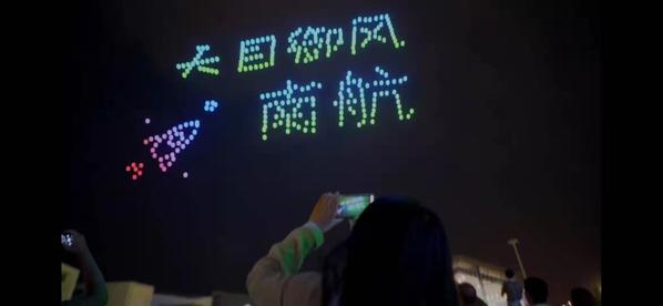 无人机编队表演由我校毕业生王钰霖、覃海群带领团队共同打造完成,300架无人机共同升空,不断变换队形,呈现出不同的图案与文字,带给现场观众视觉的冲击。王钰霖告诉记者,短暂的表演凝聚了团队数十人大量的心血与汗水,同时他也表达了对母校培养的感激之情,他希望学弟学妹能在创新与实践中成长。