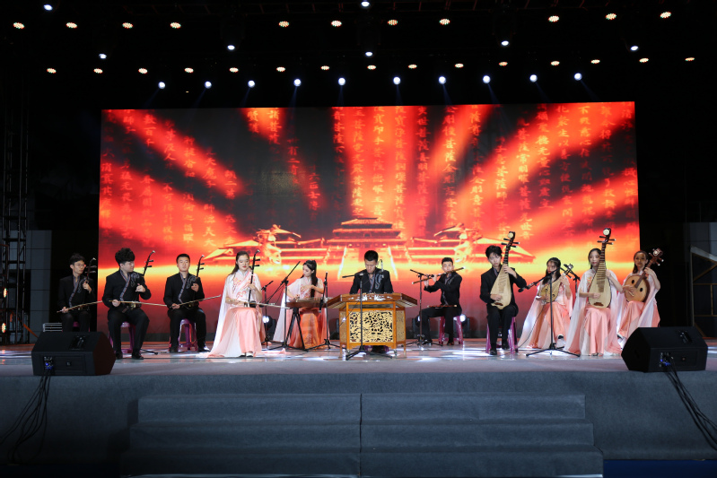 校大学生艺术团带来一场高水准的迎新晚会,舞蹈、戏曲、独唱、合奏等形式多样的节目形式为现场师生带来一场视觉盛宴。2019级新生带来的戏曲与舞蹈节目,受到观众好评,引起共鸣。来自校友王莉丽、叶倩带来的歌曲赢来场下阵阵掌声。晚会尾声,伴随着人手一面国旗的挥舞,全场合唱《歌唱祖国》,将晚会带入高潮。