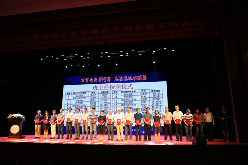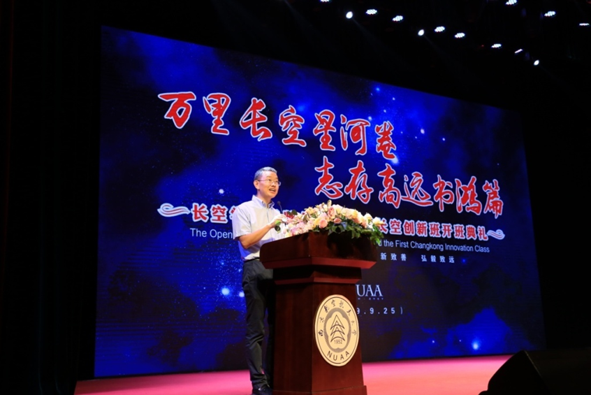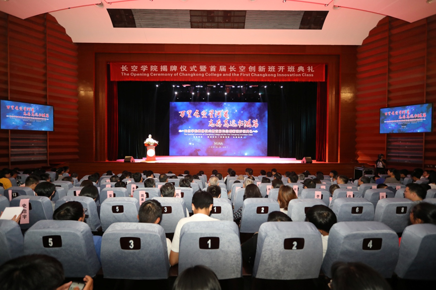 2019年9月25日,我校在将军路校区艺术中心剧场举行长空学院揭牌仪式暨首届长空创新班开班典礼。我校78级校友、中国电子科技集团首席专家梁维泰,77级校友、航空工业金城集团原副董事长程立嘉,81级校友、江苏华瑞国际集团执行总裁李宁,91级校友、南京壹进制信息科技公司董事长张有成,交通银行江苏省分行副行长李骏,校长聂宏、副校长施大宁、校党委副书记陶勇、校长助理熊克以及发展联络部、教务处、学生处、团委、国际合作处、信息化处、教师发展与教学评估中心、国际教育学院、将军路校区管委会,航空学院、能源与动力学院、机电学院的负责同志,长空学院全体班主任、长空创新班新生之友等出席典礼。典礼由长空学院副院长蒋彦龙主持。