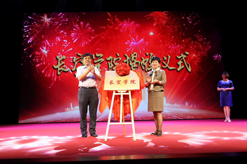 在长空学院的建设过程中,学校各个部门给予了许多关心与帮助,我校战略合作伙伴江苏省分行对长空学院的建设给予了大力支持,校长聂宏与江苏省分行副行长李骏共同为长空学院揭牌,在场的全体嘉宾与755名长空学子共同见证了长空学院建设过程的这一里程碑历史时刻。