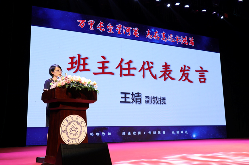 班主任工作作为三全育人的重要环节,一、二、五院为航空航天类专业配备了最优秀的班主任团队。施大宁代表长空学院为2019级全体班主任颁发了聘书。1819118班班主任王婧老师作为班主任代表发言,她结合自己在学校的学习和工作经历,表达了对“修身”和“立志”两个词的理解。作为班主任,后期她将从帮助学生开阔眼界、协助学生选择方向、配合学生开辟道路三个方面陪伴学生共同成长。
